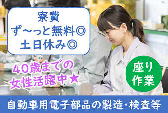 時給1450円!【寮費ず~っと無料】女性が多数活躍中です★冷暖房完備で座り作業だから通年快適な職場環境◎夜勤でも利用可能な食堂あり!