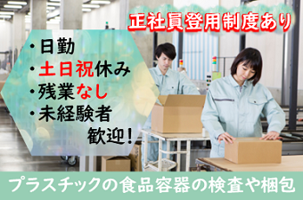 \軽作業をお探しのあなた!!/≪軽量プラスチック製品の検査、箱詰め≫パートタイム×土日祝休みでワークライフバランスも◎