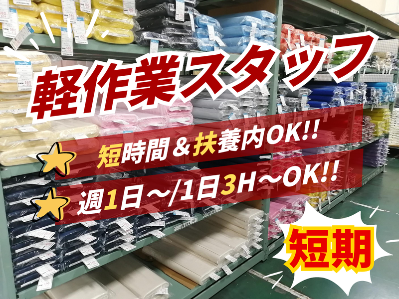 職種/仕事内容 | 仕事内容 ┏━━━━━━━━━━━━━┓ ⭐2月末までの短期バイト! ┗━━━━━━━━━━━━━┛ ~~~~~求人のpoint!~~~~~ ✅2月28日までの短期バイト! (年末年始の勤務日数は相談OK) ✅週1日~、1日3時間~OK! ✅スキルゼロOK!未経験の方も大歓迎! ✅車通勤可能&無料完備で通勤ラクラク♪ \✨面接時の履歴書不要!/ 応募後の自動返信メールにて、 即面接予約できます! 【仕事内容】 手芸用品、食品、寝具、医療用品など、 全国展開している手芸用品・生地・ ホビー材料専門店の商品を扱う倉庫で 短期の軽作業スタッフを募集中! ▼具体的には…▼ ・商品の検品 ・仕分け・ピッキング作業など ✨冷暖房完備で働きやすい職場です! ✨手芸用品など軽い商品を扱っているため、 身体への負担も少なめです◎ 【⭐2ヶ月程度の短期バイト募集◎】 ・年末年始、春休みでお小遣い稼ぎをしたい。 ・4月に向けて収入を増やしたい といった方にピッタリ! 短期で初めて見て、長期でも働きたい方は お気軽にご相談下さい。 【⭐プライベートと両立も◎】 週1日~、1日3時間~勤務OK! 「9:00~13:45」「10:00~16:00」 「12:00~17:45」など ライフスタイルに合わせたシフトでの 勤務が可能です◎ ★年末年始のシフトはご相談下さい! 【⭐服装・ネイル自由でOK】 髪型・髪色・ネイル・ピアスもすべて自由! 派手すぎなければ問題なく、 自分らしくリラックスして働けます。 おしゃれを楽しみながら無理なく続けられます。 【⭐力仕事なし!誰でも始めやすい】 扱うのは白衣やアパレル商品など軽いものが中心。 検品・値札付けなどのルーティン作業なので、 未経験やブランクがある方も安心です。 「体に負担が少なくて助かる」 という声もあります。 |