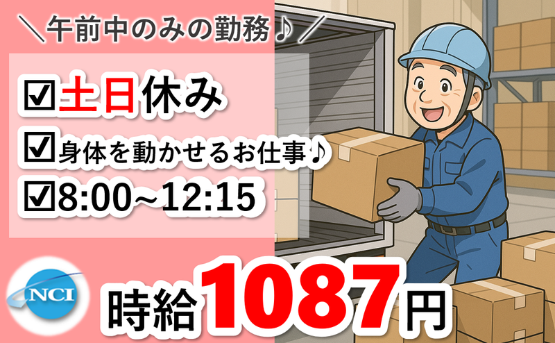 職種/仕事内容 | 仕事内容 ◇お仕事内容◇ 【トラックへの積み込み補助スタッフ】 物流企業の倉庫内にて、 トラックへの積み込み補助作業をお任せします。 ■主な作業内容 ・製品をトラックへ積み込む作業 ・荷下ろしの補助作業 扱う製品は1つあたり約10kg程度です。 ドライバーさんと声を掛け合いながら 協力して作業を進めていきます。 ―――――――――――――― ■この仕事の特徴 ・未経験OK! 積み込み作業が初めての方でも問題ありません! 先輩スタッフが丁寧に教えてくれます♪ ・体を動かす仕事! じっとしているより動く方が好きな方におすすめ♪ ・午前中のみの短時間勤務! 午後は自分の時間をしっかり確保できます♪ ―――――――――――――― ■職場環境 ・物流企業の倉庫内作業 ・作業服貸与 ・男女ともに活躍中 ・20代~50代のスタッフが在籍 ―――――――――――――― ■ここがポイント ・午前中のみの勤務 ・短時間で無理なく働ける ・未経験スタート歓迎 ・体を動かして働ける ・土日休みでプライベートも充実 ―――――――――――――― ■こんな方におすすめ ・倉庫内作業に興味がある方 ・短時間で働きたい方 ・体力を活かした仕事を探している方 ・長期で安定して働きたい方 ―――――――――――――― ■応募について 派遣が初めての方もご安心ください。 就業後も当社営業スタッフが しっかりフォローいたします。 仕事内容の質問だけでもOKです。 お気軽にお問い合わせください。 ―――――――――――――― ■■■ここもチェック!■■■ ◇有資格者活躍中 ◇フリーター活躍中 ◇ブランクOK ◇週4日以上OK ◇長期 ◇残業月20時間以下 ◇友達と応募OK ◇家庭都合休OK ◇40代スタッフ活躍中 ◇50代スタッフ活躍中 ◇学歴不問 ■■■■■■■■■■■■■■ ===お仕事開始までの流れ=== 1、まずはお気軽に下記応募フォームから ご応募ください! 2、採用担当より追ってご連絡を いたしますので面談日時を調整します! 3、スタッフ登録を兼ねた 面談と職場見学を行います! 4、入社が決まったら弊社事務所にて 入社手続きを行います! 5、お仕事スタート!! ご不明点等ございましたら お気軽にお問合せくださいませ。 〒961-0908 福島県白河市大手町12番地1 駅前田部井ビル2F 株式会社 NCI 白河支店 電話番号:0120-744-555 (通話料金はかかりません) (※お電話にてご応募の際は 「求人サイトを見て」とお伝えください!) 一般労働者派遣事業許可番号:派07-300732 職業紹介事業許可番号:07-ユ-300310 |