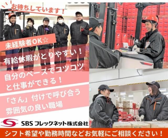 職種/仕事内容 | 仕事情報 ● 仕事内容 大手スーパーマーケット向けの商品(飲料:加工食品)を、納品先ごとに仕分けするお仕事です。間違いを減らすために業務を簡素化していますので、初めての方も覚えやすいお仕事です。商品は(3~10KGほど)、台車を使用いたしますので、体力的な負担が少なく、健康的に働けます。 未経験でも安心なお仕事 伝票のバーコードを読み込み検品し、店舗ごとに仕分けするお仕事です。モクモク・コツコツとお仕事したい方におすすめです。先輩スタッフが丁寧にサポートいたしますので、安心してお仕事を始められます。シフト調整もお気軽にご相談ください。 職場の雰囲気◎前払いOK 職場内では役職者も含めて全員が「さん」付けで呼びあい、みんなが遠慮なく意見を言い合える環境づくりを心がけています。出勤日数や曜日の固定なども柔軟に対応いたします。お気軽にご相談ください。また、給与の前払いOK!スマホで簡単、上長承認や理由記載も不要です。振込手数料は全額会社負担なのでご安心ください。 スタッフの健康をサポート グループの健康保険組合では、常備薬の割引や、24時間健康相談、インフルエンザワクチンの接種の補助など健康を保つためのサービスが目白押し。セカンドオピニオン・医師紹介サービスもしていますので、健康に不安があった際には活用ください。健康的に長く安定して働くことができる職場です。 SBSフレックネットとは SBSフレックネットがお届けするのは、お客さまの生活に欠かせない食品。会社の強みである輸配送全国ネットと、低温管理ノウハウは、お客さまの安心安全な「食の当たり前」を支えます。3温度帯に対応できる会社として、業界トップクラスの品質と実績を持つSBSフレックネットで誇りをもってお仕事しませんか? |