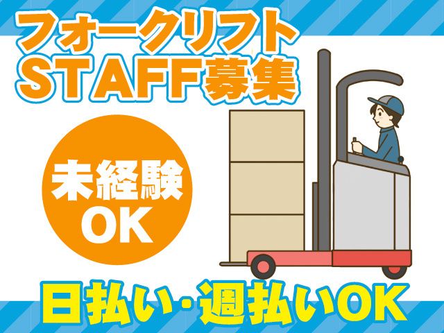 職種/仕事内容 | 仕事内容 【おすすめポイント】 ・フォークリフトの資格を活かして働ける! ・長期で安定して働ける環境 ・しっかり稼げる!高収入が期待できる職場 ・日払い対応で、急な出費にも安心 ・20代~40代のスタッフが多数活躍中! 長期で安定して働きたい方にぴったり! 勤務時間と日数がしっかり確保されているため、 長期的に安定した収入を得ることができます。 フォークリフトのスキルを活かして、 安心して長く働ける職場です。 しっかり稼げる環境です! 高時給で、がっつり稼ぎたい方におすすめ。 稼働日数が安定しているため、フリーターの方や、 収入を増やしたい方にも最適です。 日払い対応可能! お急ぎの出費にも対応可能。 すぐに働き始め、即日でお給料を受け取ることができるので、 安心してスタートできます。お気軽にご相談ください。 【仕事内容詳細】 倉庫内でのフォークリフト業務(荷物の積み下ろし・搬送など)を中心に、 その他簡単な付随作業もお願いします。 勤務開始日はご相談可能です。現在ご就業中の方もご安心ください。 40代までのスタッフが多数活躍している職場です。 応募理由は問いません! 「もっと稼ぎたい」 「資格を活かしたい」 「安定した職場を探している」など、 どんな理由でも大歓迎です! やる気さえあれば、あなたの経験を最大限に活かせる環境です。 幅広い年齢層が活躍中! 20代から40代まで、 多くのスタッフが活躍しています。 職場は和気あいあいとしており、 チームワークを大切にしている環境です。 |