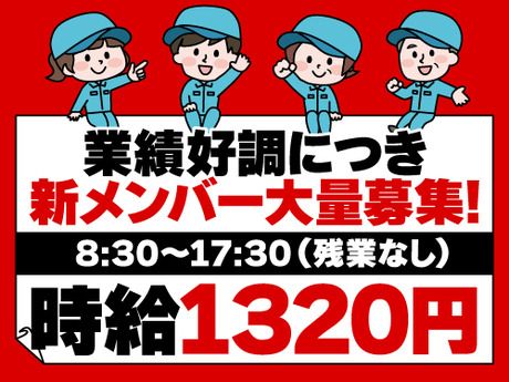 対象となる方 | 資格 50代までの男女スタッフ活躍中! 工場未経験のスタッフが多数活躍しています! カンタン作業なので安心してくださいね 弊社には幅広い年齢層の方が登録されており、様々なお仕事先で活躍されています! 若手の方が多数活躍されている現場や、 ミドル・シニアの方が活躍されている現場などもありますので まずはお気軽にお問い合わせください! ★働き方の相談OK!お仕事先は多数あります! ⇒今月はピンチだからガッツリ稼ぎたい ⇒自分のペースでお仕事したい 等のご希望も教えて下さいね! ★「倉庫内でのお仕事って初めてだから不安…」 ⇒さまざまなお仕事先があるので まずはお問い合わせだけでもOK! ⇒モクモク・コツコツと働きながらドンドン稼げますよ! |