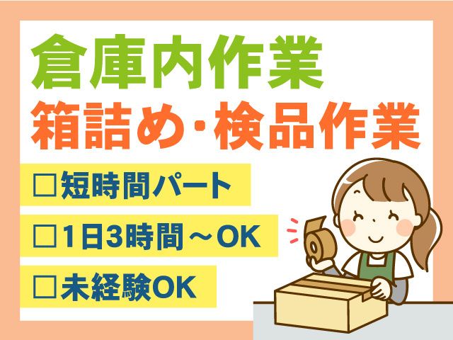資格不要!スキマ時間を有効活用! 1日3時間からの倉庫内作業! 未経験者も大歓迎!賞与あり!