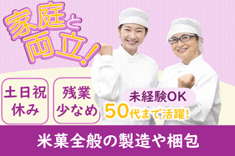 【日勤】簡単作業!未経験者大歓迎★食品製造のお仕事です!20代~50代スタッフ活躍中!うれしい土日祝休み♪長期休暇もあるのでプライベートも充実!