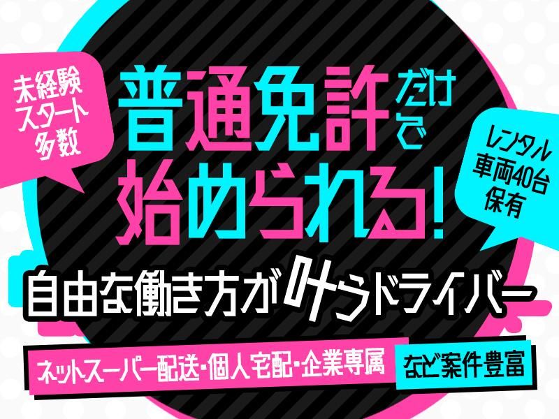 職種/仕事内容 | 仕事内容 働き方や実現したい収入額など、あなたのご希望に合わせて、幅広い案件の中から様々な配送業務をお任せします。 ▼がっつり稼ぎたい方には… 個人宅配がおススメ! 依頼に従い、荷物を届け先まで運びます。配送した個数に伴い、報酬が変動します。 ▼安定収入派の方には… チャーター便がおススメ! 法人への配送がメイン。全国24時間、ダイレクトに荷物をお届けする配送です。 ▼+αの収入UPを叶えたい方には… スポット便がおススメ! 急な配送や繁忙期のフォロー配送などが中心。1件あたりの単価が高く、半日単位から担当することができます。 ▼適度に休みを入れたい方は… ネットスーパー配送がおススメ! オンライン上で注文された商品を、スーパーからお客様の自宅へお届けします。固定のお客様からの依頼が多いため、ある程度こなしたら次第に慣れたルートで配送することができます。 ※その他、緊急配送、チルド・クール便、引越便、企業専属、倉庫保管、ルート便など、案件多数!詳細は面接にてお伝えいたします◎ ******************************** \お仕事スタートのサポート体制も万全です!/ ▼開業前のサポート 〈1〉研修制度あり! 先輩ドライバーの車に同乗して、仕事の流れや端末の操作方法などをイチから身に付けることができます。経験者の方は、研修なしで契約後に即稼働することも可能です。 ※本社から遠方地域で開業をご希望の方は、全国の協力会社にて同条研修を受けることが可能です。 〈2〉保険加入などの各種手続きをサポート! 自動車の任意保険加入など、事務的な手続きに関することもお手伝いします。 ▼開業後のサポート 〈1〉車両レンタルあり! 豊富なレンタル車の中から、月8,800円で配送車をレンタルすることができます。また車両の整備工場も完備!自家用車をお持ちでなくても、お仕事スタートできます♪ ※売上相殺可能 〈2〉ガソリンカード、ETCカード貸与 初期費用0円で始められるカギはココに!立て替えや経費精算の負担が軽減できます◎ドライバー経験者の方ならば、この待遇の良さが分かるはず! 〈3〉営業活動は一切不要 40~50社とのお取引があり、案件はかなり潤沢。ご希望の働き方に合わせて、本部から案件を紹介させていただきます◎全国に案件があるため、「地元で働きたい」という方のご要望にもお応えできると思います! 〈4〉日頃からの手厚いサポートあり 分からないこと、困ったことがあったら、いつでも気兼ねなくご相談ください!本社や協力会社がしっかりとサポートいたします◎ \普免があれば始められる!/ 業務委託のドライバーとして、 新たなスタートを切ってみませんか? ‥‥‥‥‥‥‥‥‥‥‥‥‥‥‥‥‥ ●案件潤沢!40社以上と取引あり ○稼働時間・休日・配送量など働き方は自分次第 ●頑張り次第で月50~60万円稼ぐことも可 ○1日単価3.5万円稼げる案件もあり ●月8,800円で車両レンタルあり ○初期費用0円!ガソリンカード/ETCカード貸与 ●自動車整備工場も併設! ○ご自身での営業活動は一切不要 ●全国募集!どこにいても働ける! ○開業に伴う手続き等のサポートあり! ●必要に応じて研修あり! ‥‥‥‥‥‥‥‥‥‥‥‥‥‥‥‥‥ ドライバー歴のある50~60代の方が中心に活躍中。もちろん、普免をお持ちであれば未経験スタートの方も大歓迎です! 「できるだけ働いて稼ぎたい」 「休みもしっかり取りながら安定収入を得たい」 「副業として午後だけ稼働したい」 …など、ぜひあなたのご希望をお聞かせください! |
