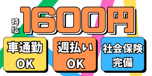 給与 | 時給1,600円以上 給与 時給1600円(高時給) ◆交通費一部支給 ◆残業手当あり ◆週払いOK ◆無料バス ◆6ヶ月後に車・バイク通勤OK |
