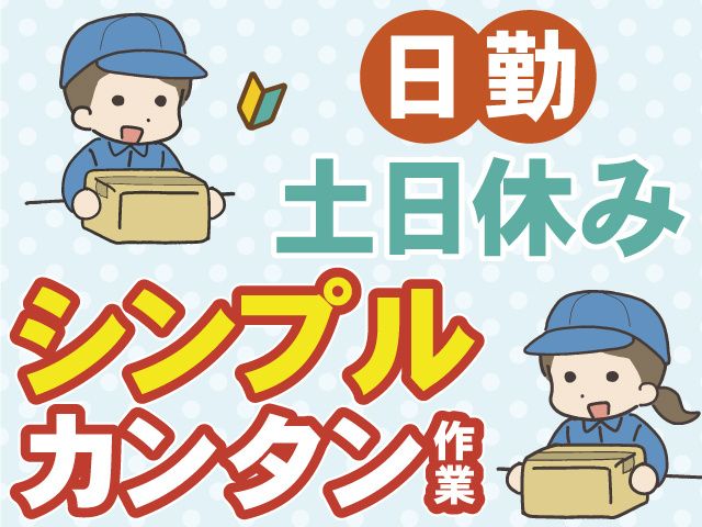 職種/仕事内容 | 仕事内容 コツコツ作業が好きな方におすすめ! 未経験から活躍できるカンタン梱包作業! <お仕事内容> ・製品の梱包作業(箱詰め・袋詰めなど) ・出荷用ラベルの貼り付け ・梱包材や資材の準備・補充 ・作業場の整理整頓 製品を箱に詰めたりラベルを貼ったりする シンプルなお仕事なので、未経験の方でも安心して始められます。 作業はマニュアルに沿って進められるため、 初めての方でもすぐに慣れていただけます! <お仕事のポイント!> ・しっかり稼げる!簡単作業で高収入! ・完全未経験からスタートもOK! ・働きやすい日勤帯! ・人気の土日休み!長期休暇あり! ・年間休日120日! ・幅広い年代の男女活躍中! ・髪色自由!ネイルOK!自分らしく働けます。 <このような方にオススメです> ・プライベートを重視されたい方 ・夫婦共働きを考えている主婦(夫)の方 ・お子様への手が離れて、職場復帰されたい方 ・子育て世代の主婦(夫)方 ・初めてのお仕事デビューの方 ・製造業や倉庫内作業の経験がある方 <直接雇用制度あり> 長期でキャリアアップも可能! 今、働いているパート・アルバイトより収入を得たい方にもオススメです! <週払い&前払い制度あり> お給料日前や入職前も安心!お気軽にご相談ください。 <派遣が初めての方も安心!> 面接から入社・入社後まで、同じ担当者がサポートいたします。 働きたい時間帯や休日の希望など、ぜひお気軽にご相談ください。 |