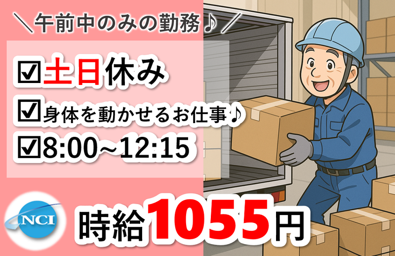職種/仕事内容 | 仕事内容 ◇お仕事内容◇ 【トラックへの積み込み補助スタッフ】 物流企業の倉庫内にて、 トラックへの積み込み補助作業をお任せします。 ■主な作業内容 ・製品をトラックへ積み込む作業 ・荷下ろしの補助作業 扱う製品は1つあたり約10kg程度です。 ドライバーさんと声を掛け合いながら 協力して作業を進めていきます。 ―――――――――――――― ■この仕事の特徴 ・未経験OK! 積み込み作業が初めての方でも問題ありません! 先輩スタッフが丁寧に教えてくれます♪ ・体を動かす仕事! じっとしているより動く方が好きな方におすすめ♪ ・午前中のみの短時間勤務! 午後は自分の時間をしっかり確保できます♪ ―――――――――――――― ■職場環境 ・物流企業の倉庫内作業 ・作業服貸与 ・男女ともに活躍中 ・20代~50代のスタッフが在籍 ―――――――――――――― ■ここがポイント ・午前中のみの勤務 ・短時間で無理なく働ける ・未経験スタート歓迎 ・体を動かして働ける ・土日休みでプライベートも充実 ―――――――――――――― ■こんな方におすすめ ・倉庫内作業に興味がある方 ・短時間で働きたい方 ・体力を活かした仕事を探している方 ・長期で安定して働きたい方 ―――――――――――――― ■応募について 派遣が初めての方もご安心ください。 就業後も当社営業スタッフが しっかりフォローいたします。 仕事内容の質問だけでもOKです。 お気軽にお問い合わせください。 ―――――――――――――― ■■■ここもチェック!■■■ ◇有資格者活躍中 ◇フリーター活躍中 ◇ブランクOK ◇週4日以上OK ◇長期 ◇残業月20時間以下 ◇友達と応募OK ◇家庭都合休OK ◇40代スタッフ活躍中 ◇50代スタッフ活躍中 ◇学歴不問 ■■■■■■■■■■■■■■ ===お仕事開始までの流れ=== 1、まずはお気軽に下記応募フォームから ご応募ください! 2、採用担当より追ってご連絡を いたしますので面談日時を調整します! 3、スタッフ登録を兼ねた 面談と職場見学を行います! 4、入社が決まったら弊社事務所にて 入社手続きを行います! 5、お仕事スタート!! ご不明点等ございましたら お気軽にお問合せくださいませ。 〒961-0908 福島県白河市大手町12番地1 駅前田部井ビル2F 株式会社 NCI 白河支店 電話番号:0120-744-555 (通話料金はかかりません) (※お電話にてご応募の際は 「求人サイトを見て」とお伝えください!) 一般労働者派遣事業許可番号:派07-300732 職業紹介事業許可番号:07-ユ-300310 |