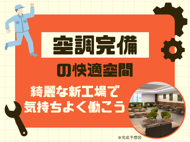 職場環境・雰囲気 | 職場環境 30代・40代の男女スタッフが中心となって活躍する職場です。工場内は空調が効いており、季節を問わず働きやすい環境が整っています。社員登用実績もあり、長く安定して働けます♪ |