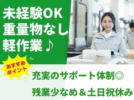 職種/仕事内容 | 仕事内容 【仕事内容】 *・。・。*・。・。*・。・。* ☆お仕事のポイント☆ ★残業ほぼなし&土日祝休み!家庭との両立にピッタリ♪ ★未経験歓迎!丁寧な指導があるので安心スタート◎ ★空調完備の快適環境!20代~50代の男女活躍中! <お仕事内容> \★大手メーカーでの軽作業スタッフ募集★/ 【主な業務内容】 ◆部品のピッキング作業 ◆小袋への個包装作業 ◆段ボールへの梱包作業 ★ネジなどの軽い部品を扱うので、重量物はほとんどなし!★ 未経験から始められる簡単作業で安心です♪ 【職場環境】 ◆空調完備で快適にお仕事できる明るい職場! ◆20代~50代の幅広い年代が活躍中!中高年層も多数♪ ◆喫煙所・喫煙室あり&週1回の禁煙デーあり 【おすすめポイント】 ◆土日祝休み&残業ほぼなし!プライベート充実◎ ◆未経験歓迎!しっかり指導&サポート体制あり♪ *・。・。*・。・。*・。・。* (雇入れ直後)上記のとおり (変更の範囲)会社の定める業務 【アピールポイント】 【姫路市夢前町】梱包・入出庫等の軽作業/残業なし/男女活躍中/空調完備 【こんな方にオススメ】 ・軽作業未経験の方 ・パート・アルバイト・派遣のお仕事をお探しの方 ・フォークリフト免許をお持ちの方 ・高収入・高時給のお仕事をお探しの方 ・コンビニ・スーパー・飲食店・ファストフード店での勤務経験を活かしたい方 ・商品検品・仕分け・ピッキングなどの倉庫内作業の経験を活かしたい方 ・箱詰め・ラベル貼り・シール貼りなどのコツコツもくもく軽作業の経験を活かしたい方 ・梱包・包装・組立・加工などの工場製造の経験を活かしたい方 ・検査・充填・品出しなどの機械オペレータの経験を活かしたい方 ・食品工場(肉・鮮魚・野菜・惣菜)での盛り付け・調理・材料カットの経験を活かしたい方 ・カンタン作業・ライン作業の経験を活かしたい方 ・黙々(モクモク)と進められる仕事がしたい方 |