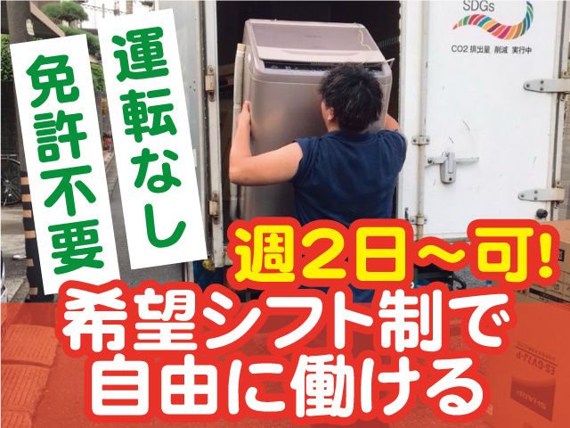 職種/仕事内容 | 仕事内容 【未経験者歓迎】配送助手アルバイト 〇週2日以上、週末のみ(土日)できる方も歓迎! 〇希望シフトで自由に働けます 〇Wワーク・副業OK! <経験・スキル不要で日給11,000円> 【収入例】 ・週2日(月8日勤務)=月収8.8万円 ・週5日(月20日勤務)=月収22万円 週払い相談OK(社内規定有) お気軽にご相談ください! <運転なしの横乗りスタッフ> 個人宅への家電や家具の配達・設置を行います。 ・配送ドライバーと2人1組で作業 ・配線作業はドライバーが担当するので安心 ・個人宅の配送だから夜遅くまでの勤務なし ・梱包材の片付けなどシンプル作業からスタート 配送時は助手席に乗っているだけ! 雑談したり、ラジオを聴いたりと気楽な雰囲気です。 未経験でも丁寧な研修があるので安心です! <配送エリア> 江東区・江戸川区・葛飾区など都内23区内中心 〇最寄駅集合&現地解散 集合場所:1件目の配達先の近隣の駅 解散場所:配送センターのある江東区 ※南砂町駅まで送り有 配送トラックは千葉県白井市から都内にくるので、 最初の配送先の最寄りで待ち合わせて勤務スタート。 配達終了後は、配送センターがある江東区に向かい、現地解散となります。 センター最寄りの東西線「南砂町駅」までお送りします。 <おすすめポイント> ・学歴不問/経験不問/免許不要 ・週2日で月収8万8千円!少ない日数でもしっかり稼げます ・アルバイト優先で組む「希望シフト制」 ・週払い相談OK(社内規定有) ・大学生さんも活躍中 ・ブランクある方も歓迎 ・仕事量安定の大手家電量販店のお仕事 引っ越しバイトや荷物運びバイトの経験者、 体を動かして働くことが好きな方なら ドライバー助手未経験者も高収入が可能です! ますは、お気軽にお問い合わせください。 |