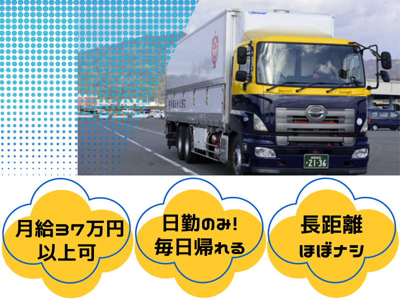 職種/仕事内容 | 仕事内容 ──────────────────── 【月37万1000円以上可×日勤のみ×長距離ほぼナシ】 【創業70年以上の安定企業/専属車両で快適】 【食を支える仕事で景気に左右されにくい】 ──────────────────── 「長く安心して働ける 大型ドライバーの仕事がしたい」 「深夜帯や長距離ではなく、 日勤中心で生活リズムを整えたい」 そんな方におすすめの、 食品配送大型ドライバーの募集です。 当社は創業70年以上。 豊洲市場を中心に、 主に水産物・冷凍食品の配送を行う物流企業です。 日本の食を支える安定した業界のため、 景気に左右されづらく“安定収入 × 働きやすさ” がどちらも叶う環境です。 ───────────────────── 【◆お仕事内容】 大型10tトラックにて、 冷蔵・冷凍食品の配送をお任せします。 冷蔵倉庫で荷物を積み込み、 加工工場や倉庫へ配送します。 配送後、翌日の荷物の積み置きを行います。 <1日の配送件数> ・2〜3件/日 <独り立ちの目安> ・約1ヶ月(初任者講習・同乗研修あり) 未経験の方も安心してスタートできます。 手積み・手降ろしのみ 積み待ち・降し待ちがありますが、 待機中は車内で自由に過ごしていただけます。 拘束時間は長めですが、 身体の負担は比較的少なめです。 ───────────────────── 【◆働きやすい環境ポイント】 ✔ 日勤のみ(5:30〜14:30)で生活リズムが安定 夜勤はありません。 家庭との両立も無理なく可能です。 ✔ 長距離ほぼなし/関東圏内の配送が中心 毎日家に帰れる仕事を探している方にも最適です。 ✔ 専属トラックで快適勤務 自分だけの車両で業務に集中できます。 ✔ 月給35万円以上可/安定した収入 賞与・決算賞与・昇給もあり、 長く働くほど収入が安定します。 ✔ 50代・60代も多数活躍中/最長45年以上の定着実績 幅広い年代のドライバーが活躍しており、 「最後の転職にしたい」という 理由で入社する方も多い仕事です。 ───────────────────── 食品輸送は社会に欠かせない仕事。 今後も需要が続く安定業界で、 将来を見据えた働き方を実現できます。 ───────────────────── ◎大型10tドライバー(男性) 「関東圏の配送なので毎日家に帰れます。 仲間同士助け合う雰囲気があり、 相談しやすい職場です。 給料も安定していて 安心して続けられています。」 ───────────────────── 未経験の方も経験者の方も、 安心してスタートできる環境です! ぜひ当社で新しいキャリアを築きませんか? ご応募お待ちしております |