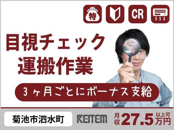 職種/仕事内容 | 仕事内容 【プラスチック部品の検査・梱包・運搬】 自動車の部品や半導体関連の プラスチック部品を作る工場でのお仕事です。 目視での検査や出荷準備をお願いします。 ▼作業内容 (1)加工後の製品を目視でチェックする (2)チェック後の製品を梱包する (3)準備した箱に製品を入れ、指定場所へ運ぶ 【求人担当者からヒトコト】 ライン作業はないので、コツコツと集中して 自分の作業を行えます! ・。'.・。'.・。'.・。'.・。'.・。'.・。'.・。 ◆ おすすめポイント ◆  ̄ ̄ ̄ ̄ ̄ ̄ ̄ ̄ ̄ ̄ ̄ ̄ ̄ 【プラスチック部品の検査・梱包・運搬】 『3ヶ月ごとに5万円ボーナスあり!』 #経験不問 #20~40代活躍中 #交替勤務 #長期休暇あり #空調完備のクリーン環境 #時給1300円 #通勤時のガソリン代支給 ・。'.・。'.・。'.・。'.・。'.・。'.・。'.・。 ◆ 職場環境について ◆  ̄ ̄ ̄ ̄ ̄ ̄ ̄ ̄ ̄ ̄ ̄ ̄ ̄ ▽20代~40代のスタッフさん活躍中 モノづくりが初めてでも、先輩スタッフさんや 社員さんがサポートしてくれるので安心です。 ▽クリーンルームでのお仕事です 空気中のゴミやホコリの侵入を防ぐため、 クリーンスーツ(防塵服)を着用します。 室内は温度が一定に管理されているので、 年中改定にお仕事していただけます。 ・。'.・。'.・。'.・。'.・。'.・。'.・。'.・。 ◆ 採用担当よりPR ◆  ̄ ̄ ̄ ̄ ̄ ̄ ̄ ̄ ̄ ̄ ̄ ̄ ̄ (1)目視チェック→箱詰め→運ぶだけの3STEP! (2)空調完備のクリーンな環境で毎日快適にオシゴト (3)お給料日を待たなくてOK!スマホでラクラク申請可 ・。'.・。'.・。'.・。'.・。'.・。'.・。'.・。 ◆ 業界未経験者大歓迎 ◆  ̄ ̄ ̄ ̄ ̄ ̄ ̄ ̄ ̄ ̄ ̄ ̄ ̄ 以下の業界での勤務経験のある方も活躍中! ・自動車整備業界 ・物流・運輸業界 ・飲食業界 ・小売業界 ・サービス業界 ・アミューズメント業界 ・インフラ業界 ・ホテル業界 etc. ・。'.・。'.・。'.・。'.・。'.・。'.・。'.・。 ◆ 土日休みのお仕事 ◆  ̄ ̄ ̄ ̄ ̄ ̄ ̄ ̄ ̄ ̄ ̄ ̄ ̄ 〈スタッフの声〉 週末はしっかり休みたい方にオススメのお仕事です。 平日は集中して働き、週末は自分の時間を大切にできます。 友人と旅行にも行きやすく、プライベートが充実できます! ・。'.・。'.・。'.・。'.・。'.・。'.・。'.・。 |