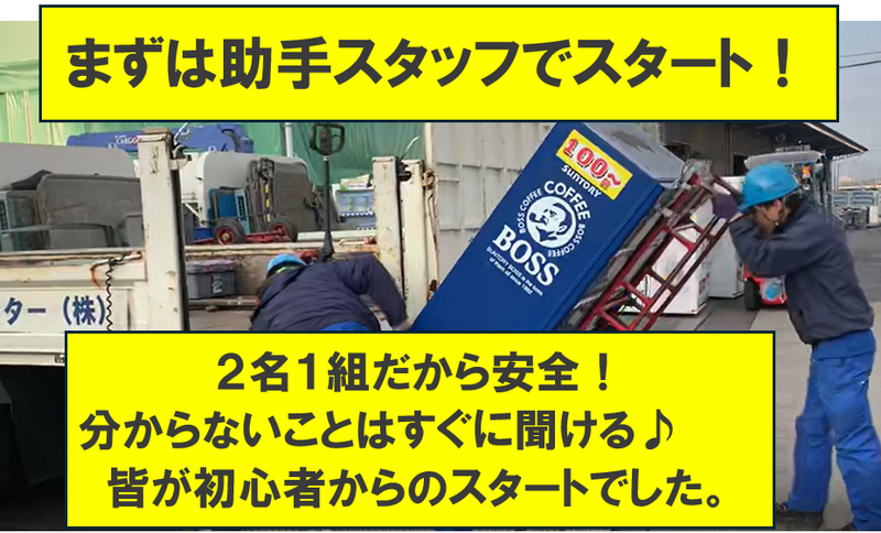 職種/仕事内容 | 仕事内容 \未経験OK×年収400万円~可×サントリー案件/ 「街で見かける“あの自販機”」 実は、あなたが設置したものかもしれません。 自販機の最終設置・調整を担う、 ちょっとレアな仕事です。 機械を「動かして完成させる」 モノづくりの達成感が味わえます。 安定企業で、先輩と2人1組から スタートできるから未経験でも安心。 月給30万円~+賞与年2回+ 資格取得支援制度など、待遇も充実! 「正社員で、長く続けられる技術職を探している」 そんなあなたに、ピッタリの環境が整っています。 <この求人のポイント!> ✨自販機を【完成させる】仕事! ✨全国トップクラスの実績を誇る安定企業 ✨飲料業界大手『サントリー』の機材中心 ✨万博会場内で100台の自販機を設置しました! ✨未経験OK!先輩と2人1組でスタート ✨助手業務からじっくりスタート ✨普通免許でOK◎資格取得は全額会社負担 ✨UIターン&第二新卒も大歓迎 ✨適度に体を使って健康的に働ける仕事 サントリーさんの自販機・給茶機を、 企業様や施設に設置する仕事です。 お客様に利用してもらえるよう、 最後の仕上げとなる「設置」を行います。 単なる配送と設置に終わらず、 動かすことで、完成へと導く、 モノづくりの「最終到達点」を 実感できる仕事です。 <仕事内容> 2人1組でパワーゲート付きトラックに乗り、 指定の場所に自販機や給茶機を 搬入・設置します。 現場はオフィスビルの中や 屋外の道路沿いなどさまざま。 「安全に設置できるか?」など 事前にしっかりチェックしてから 据付作業を行います。 【作業イメージ】 ▼機材の搬入 ▼水平チェック&地面固定 ▼商品を入れて試運転 ▼無事に作動するか確認! ▼OKならお客様にサインをもらって完了! ★作業時間:1か所あたり40分~1時間 ★1日の設置件数:5~7件程度 ※設置以外にも、撤去・移動作業などの 依頼に応じることもあります。 <成長サポートも充実!> 入社後は助手からスタート。 隊長になるまでは運転しません。 安全・丁寧に教えるので、 機械や工具が初めてでも 安心してくださいね◎ 将来的には【運転&現場リーダー】 として活躍を目指せます! <スキル・資格も身につく> 中型免許や資格取得は全額会社負担! 取得後は手当も支給されます◎ ◆中型免許(MT) ◆小型移動式クレーン ◆玉掛け ◆第二種電気工事士 ◆自販機調整士 など ※現在オートマ車へ移行中です。 <職場の雰囲気は?> 元飲食・営業・製造など 未経験スタートの仲間が多数活躍中! 面倒見のいい先輩が多いから、 何でも相談しやすいのが特徴です。 笑顔で声をかけ合う、 チームワーク抜群の職場です! <まずは話を聞くだけでもOK!> 「免許ないけど大丈夫かな?」 「仕事についてもっと知りたい」 そんな方も、お気軽にご連絡ください♪ 応募は1分で完了! 見学だけのご相談も歓迎です! <休みもしっかり取得で働きやすさ◎> ◆年間休日110日+有給5日取得義務で 実質115日以上休みがあります! 週休2日シフト制で平日休みもあるので、 混まない休日でプライベート充実◎ ✅当社について… 自販機などの設置や修理を行う会社です。 自販機大手のサントリーと取引しており 業績も安定。近畿、東海、北陸の仕事は ほぼ「ベンダーサービスセンター」が 行っていて、全国トップクラスの実績を 誇っています。売上も去年が 39億2500万円。2022年から2年で 12億円の売り上げ増!自販機だけでなく ビールやジュースサーバーなどの仕事も コロナが明けて以降増え、業績好調。 ✅経営基盤も安定! 当社は、全国展開している 「梅田運輸倉庫㈱」のグループ企業 ▶社員数1000人以上 ▶健康経営優良法人取得 ▶社員定年65才(雇用延長あり) |
