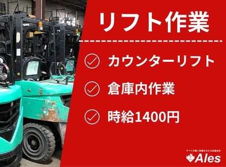 職種/仕事内容 | 仕事内容 フォークリフト ★オススメポイント★ ・作業の大半がカウンターリフト操作(約7~9割) ・複雑な作業が少なく、すぐに慣れる ・「昔リフト乗ってた」それ、今こそ活かせます。 【具体的な内容】 ・出勤後に作業内容を確認し、カウンターリフトで入出庫作業を行います。 ・主に出荷準備が中心の作業です! ・基本はパレット単位での運搬なので、作業のほとんどがリフト操作です。 ・流れが決まったシンプル作業で、すぐに慣れていただけます。 ☆まずは見学からスタート! |