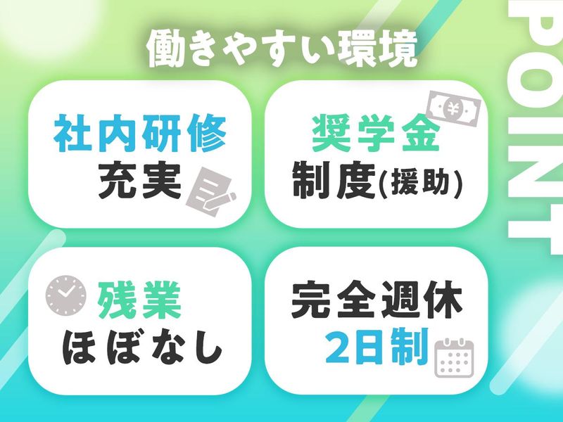 休日休暇 | 休日休暇 【年間休日125日】 ※2025年実績 ・完全週休2日制(土日) ・祝日 ・夏季休暇 ・年末年始休暇 ・年次有給休暇 ・慶弔休暇 ・誕生日休暇 ・アニバーサリー休暇 ・産前産後休暇 ・育児休暇 |