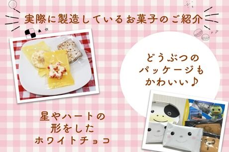 職種/仕事内容 | 仕事内容 箱折り/箱詰め/シール貼り 出来上がったお菓子の箱詰めやパッケージへシールを貼る等をお願いします。 注文状況によっては、製造補助をお願いする場合もございます。 お土産ショップや道の駅に並んでいるお菓子です◇ キャラクターのパッケージもかわいい! 北海道観光のお土産や、ちょっとした手土産にも最適なクッキーなどの焼き菓子を製造しているお菓子工場です。 ◇スマイルをモチーフにしたクッキー ◇ホワイトチョコレートを挟んだラングドシャ ◇どうぶつパッケージのクッキー ◇ハート型のチョコレート など、ときめくお菓子をつくっています! 箱詰め・シール貼り◆◇ お仕事内容は、出来上がったお菓子の箱詰めやパッケージへシールを貼る等をお願いします。 箱折り/箱詰め/シール貼り 1つ1つ手先を使う作業もあるので、細かい仕事やコツコツ作業が好きな方にぴったり! 注文状況によっては、製造補助をお願いする場合もございます。 |