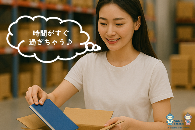職種/仕事内容 | 仕事内容 *…*…*…*…*…*…*…*…*…*…* 空調完備で人気の箱詰めや梱包作業! *…*…*…*…*…*…*…*…*…*…* 【物流倉庫で梱包・検品】 物流倉庫内で日用雑貨などの商品の箱詰め・梱包・ピッキングをお願いします。 研修もあるので未経験でも安心! まずは見学してみませんか? - 【勤務時間】 勤務形態:シフト制 9:00~17:00 9:00~16:00 10:00~17:00 13:00~17:00など *勤務時間は相談出来ます *シフト制 週3日~週5日勤務 【時給】 時給 1070円~1150円 月収例) 1070円×7h×11.5日(週2.3)=86,135円 【休み】 シフト制※土日は基本休み - ▼ここがポイント‼▼ ✅未経験でも安心!簡単作業 ✅コツコツモクモク取り組める環境 ✅すぐに覚えて活躍できます! |