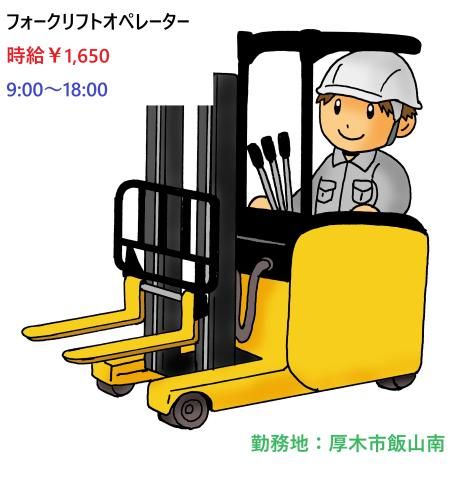 職種/仕事内容 | 募集要項 職種 急募 フォークリフトオペレーター ピッキング 入出庫 雇用形態 派遣社員 仕事内容 フォークリフトによる運搬作業 ※リーチフォーク 商品のピッキング (タブレット端末操作有) ■取扱品■ 加工食品(めんつゆ・スープ等) 酒類 |