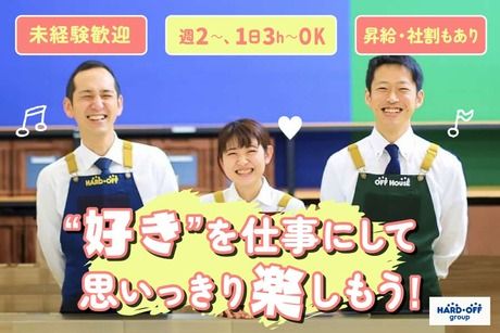職種/仕事内容 | 仕事内容 ギター・ゲーム・カメラが好きな方にオススメ!好きな物に囲まれながら働けます! 楽器・PC・オーディオなどの 幅広い商品の買取やクリーニングをして お店に並べるのがメインのお仕事です。 ※買取(査定)作業はマニュアルあり 先輩がイチから教えます! 買い取り業務は毎日たくさんの 楽しい商品が運ばれてくるので 毎日ワクワクしながら働けます! あなたの「好き」や趣味を仕事に活かせます!知識・経験は不要です! 【買取り&査定】 先輩がイチから教えます! 難しい知識は必要なし! 【クリーニング】 きれいに掃除することで、新品同様の仕上がりに! 次のお客様に手に取っていただけるよう、丁寧に作業します。 【商品陳列】 お客様が商品を手に取りやすいように商品を陳列します。 自分の工夫が売上アップにつながるのでやりがいバッチリ! キャリアも給与もUP!!自分の頑張り次第で時給がどんどん上がります! 働きながら商品知識が付いてくる! もっと楽しくなるお仕事です! 自分の趣味を活かしたり深められる職場 頑張りはしっかり評価!昇給制度あり! 正社員登用もあり!(毎年10名以上実績あり) ※しっかりとした研修制度があるので、未経験からでも キャリアアップできる環境が整っています。 ”楽しいリユースショップ”パソコン・ゲーム・オーディオ・カメラ等に興味がある方大歓迎! <特別な知識や経験は一切不要!> <未経験で始めたスタッフが多数活躍中> 使わなくなったけどたくさん思い出がある、 お気に入りだったなど、捨てるのはちょっと…、 他の人に使って欲しい… 毎日たくさんのお品物をお客様から買い取り、 それを必要としてくれる客様へお売りしています! 出会いや繋がりにやりがいを感じます! 楽しい商品がいっぱい!「好き」が見つかるリユースショップ 共通の趣味を持った仲間達と楽しく働きませんか?? 日々さまざまな商品と接する中で、 以前から好きだったものをもっと好きになったり、 関心のなかったものに 興味が沸いてくるのもリユースの魅力です! シフトや社内の雰囲気など気になることがあれば 面接の際に何でもお聞きください! |