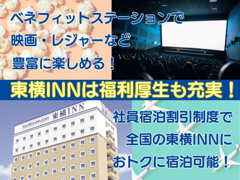 待遇・福利厚生 | 【保険制度】 雇用保険、労災保険、健康保険、厚生年金 【福利厚生】 待遇・福利厚生 【福利厚生】 *昇給あり *ミニボーナスあり *交通費支給(月上限5万円まで) *22時~翌5時までは時給25%UP! \頑張った分だけインセンティブも/ 『稼働率手当』『繁忙期特別手当』あり *社会保険完備 *制服貸与 *有給休暇(半年以降付与) *宿泊割引 └全国の東横イン本人30%・家族知人20%割引 *従業員割引/ベネフィット・ステーション └弊社と提携している会員制で、 お得な待遇が受けられるサービス。 約14000施設の宿泊施設に 会員価格でお得に利用ができたり、 その他にも・・・ ✅スポーツクラブ ✅介護・育児 ✅健康管理 ✅研修講座 ✅エンターテイメント ✅物販 etc 6000以上の様々なライフサービスを 揃えています。 これらすべてのメニューを 会員特別価格で 利用することができるサービスです。 |
