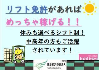 清潔な倉庫✨土日祝休み・リフト作業!