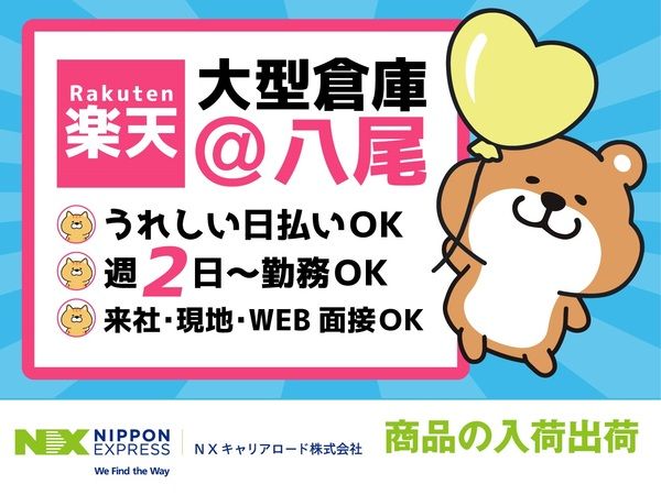 職種/仕事内容 | 仕事内容 \\勤務先は…楽天市場の新設倉庫!// \\3月末までの勤務!// 軽作業staffを大量採用中!! 経験・スキルは一切不問です!! ================== 全くの未経験という方も積極採用!! 「八尾市内で就職先を探している」 「未経験OKの仕事を探している」 「週2日程度で働きたい」 という方は是非ご応募ください!! ================== 「楽天市場」の最新巨大倉庫内にて、 簡単軽作業のオシゴトをお任せします◎ <具体的には…> 楽天市場で注文があった、 生活雑貨や食料品などの軽量物を ・配送先ごとに仕分け ・ピッキング(取り出し) ・シール貼り など、誰でもできる超シンプル作業です! 大型倉庫では大人数が一斉に作業をする為、 誰がいつ作業をしても良い様に 1人1人の業務は可能な限りシンプルにしています! <どんな職場環境?> 広くて綺麗&清潔な巨大倉庫内には、 エアコン完備はもちろん、 カフェの様な休憩室、自販機も完備! 軽食を購入できる売店もあります!! 休憩時間は思う存分リラックスできますよ◎ 。.。:+* ゚ ゚ *+:。.。:+* ゚ ゚ *+:。.。.。:+*゚ ゚ *+:。.。: \楽天倉庫のメリット/ 【⭐とにかく清潔で綺麗な倉庫内!⭐】 ホテルのようなエントランスで 倉庫の隅々まで管理が 行き届いている環境です! 一人一人にセキュリティカードが貸与され、 ロッカーも完備しているので、 私物や貴重品の管理についても安心です! 【⭐柔軟なシフト制度!⭐】 巨大倉庫には数百人の スタッフが在籍しているので、 シフトは超柔軟に対応ができます! 急な休み変更もお気軽にご相談ください! 【⭐誰でもできる簡単作業!⭐】 複雑な作業は一切ございませんので、 全くの未経験という方も大歓迎です!! 年齢も不問なので… 「なかなか次の仕事が決まらない」 という方は是非ご応募ください!! |