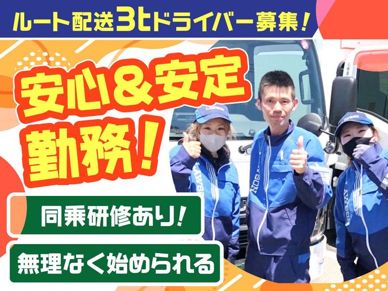 職種/仕事内容 | 仕事内容 3tトラックにて、コンビニ食品の ルート配送をお任せ! 今回はアルバイト・パート募集です。 ★選べる勤務スタイル! ★時給1300円~! ★安心して働ける環境と待遇をご用意! (入社祝金・友達紹介制度・昇給・賞与年2回・無事故手当等) ★勤務時間の相談もOK! ★女性ドライバーも活躍中! 【お仕事内容】 コンビニ食品を各店舗へルート配送! 高収入可!環境・待遇も整っています◎ 【具体的には...】 大手コンビニのチルド食品・お弁当・ サンドイッチなどをセンターから店舗へ 配送します。 配送エリアは都内近郊で1コース8~10件 毎日同じルートでの配送なので、道に 詳しくなくても大丈夫です! 「決まった時間」「決まったコース」 だから、未経験でも始めやすいお仕事です。 <未経験・ブランクOK!> ドライバー未経験やブランクのある方でも、 丁寧な同乗研修で不安がなくなるまで しっかりと一人前に育てますので、お気軽に ご応募ください。 景気に左右されない業界大手という 安定感抜群の会社で長期お仕事しませんか? 嬉しい特典あり! クリスマスにホールケーキのプレゼントや 年明けにはお年玉をもらえたりのプチ特典も あります♪ |