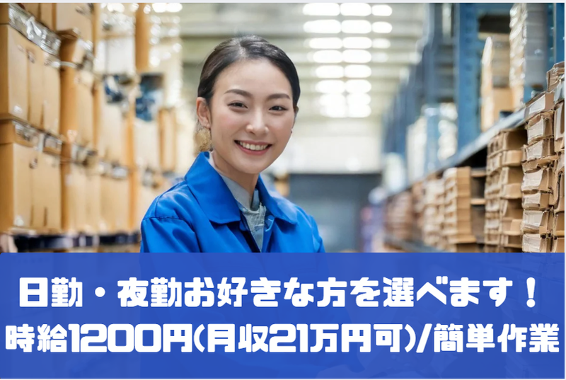 簡単作業◎時給1200円~!完全週休2日制/扶養内も相談OK