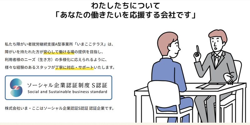 職種/仕事内容 | 仕事内容 ■障害がある方の募集です 【あなたにお任せする仕事内容】 ・主に検品、出荷作業 ・そのほかに軽作業や事業所外での清掃作業(公園清掃・介護施設清掃)、ポスティングなどもお任せします。 ・パソコン作業などもあります。 *スタッフが丁寧に教えるので初めての方でも覚えられる仕事です。 *働きやすい環境を備えています。 *1日の実働時間が4時間半なのでブランクのある方も無理なく働けます。 ※当社は枚方市で就労継続支援A型事業所を運営しており、障がいに熟知したスタッフもいるので安心してください。 ※<障がい者求人>就労継続支援A型 ※求職者の自己負担額は0円です。 ※どの障がい区分でも申込可能です(精神、知的、身体、難病) 【アピールポイント】 ・しっかりと就労に向けて実践的な訓練ができます。 ・何でも相談できるアットホームな関係性です。 *.。.**.。.**.。.**.。.**.。.**.。.* 【株式会社いま・ここについて】 障がいがある方向けの支援施設や グループホーム、企業主導型保育園など運営。 100年後も当社が誰かの社会の役に立ち、 次の世代につないでいける会社でありたい という想いで、日々前進しています。 他、新事業としてリラクゼーションサロンや 障がい者の生活支援なども順次スタートしています。 「就労継続支援事業」は、 働きたいと思っていても何か原因があって社会に出られない方が 活き活きと働けるように応援する事業です! *.。.**.。.**.。.**.。.**.。.**.。.* |