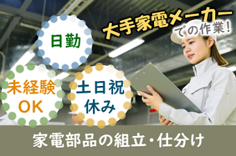CDPスタッフ多数活躍中!未経験者大歓迎★部品の仕分け/組立作業◎大手優良メーカー内でのお仕事です【勤務地/栃木県栃木市大平町】