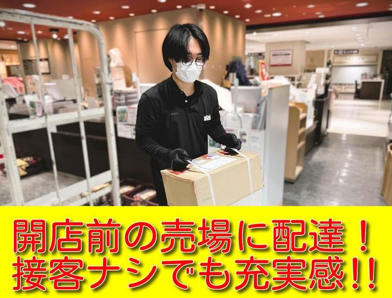 職種/仕事内容 | 仕事内容 8時前時給1725円!交通費手当1000円‼ ≪授業の無い午前中!本業とWワークに‼≫ ポロシャツ貸与&スニーカー可で高島屋◎ ■タカシマヤに届けられる膨大な商品も、 売場に届いて無ければ販売できません。 デパートの開店を整えるヤリガイあり! 【お仕事のオススメポイント】 ✅8時前時給は1725円! ✅早朝だから通勤楽々&駅スグ♪ ✅午前中だけ!ご自分の時間もタップリ‼ ✅上着貸与でスニーカーOK◎ ✅フィットネス感覚の動ける軽作業! ≪食料品を荷受け・検品して売場にお届け≫ 【仕事内容】 高島屋に納品される食料品を、 荷受け・検品して開店前に各売場にお届け! =男性活躍中のフィジカルな軽作業‼ 【お仕事の流れ】 ♪荷受け 日本橋高島屋本館にトラックが到着 ↓ ♪検品 商品を積み降ろし検品 ↓ ♪商品移動 エレベーター前まで台車移動・積込み ↓ ♪商品運搬 デパ地下や各階に台車積み降ろし ↓ ♪売場届け 各売り場へ商品お届け ♪テキパキと荷受け・検品して商品移動し、 シッカリと確認して各階売場にお届け! ♪開店前の後方作業がメインですから 接客未経験の方でも大丈夫です◎ ♪デパート売場は女性が多数なので、 後方で支える作業系男子が活躍中! 男性スタッフ活躍中のチーム作業です! ♪事前研修(1H)も時給1,380円♪ ♪学校とバイトの二刀流! 本業と副業のWワークに最適‼ 【業務委託:請負先→日本橋高島屋】 |