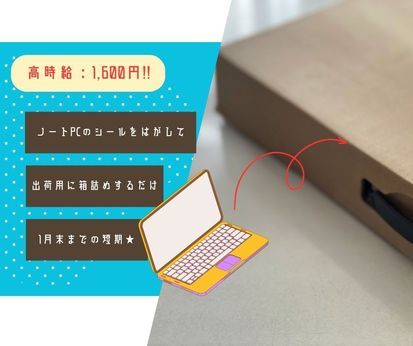 2026年1月末までの短期!【高時給1600円】ノートPCのシールはがし&箱詰めスタッフ