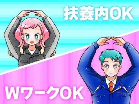 待遇・福利厚生 | 【福利厚生】 待遇・福利厚生 【福利厚生】 *バイク・車通勤OK/規 *週払いOK・交通費支給/規 *空調完備 *扶養内勤務 *副業・WワークOK *来社不要・履歴書不要 *ハッピーリターン制度あり(規定) |