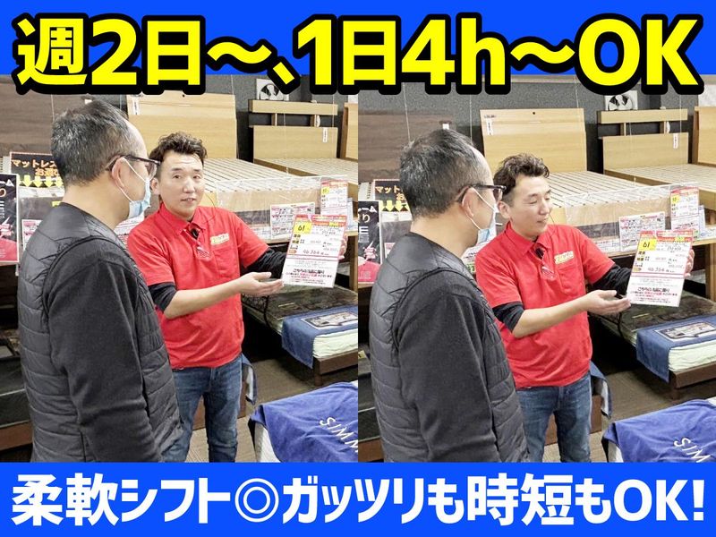 職種/仕事内容 | 仕事内容 ✅土日時給UP! ✅未経験歓迎!丁寧なサポートあり◎ ✅週2日~、1日4h~ok! *-* 《販売職》 ・接客、販売 ・レジ対応(売上伝票記入) ・品出しなどの商品管理 ・ディスプレイやPOP作成などのお店づくり 《配送職》 ・家具の搬入作業 ・家具インテリアの組み立て ・商品の展示、レイアウト ・お客様の車へ積込み ・配送助手 ・接客補助業務 一緒に仕事をするメンバーとは、常に協力しあうので気づけば仲も深まってます♪ 荷積みで一息つくタイミングや休憩中に他愛ない会話をすることも。 ==================== 2026年に加古川に╲新店オープン/ 今後も店舗拡大を目標にスタッフ募集中! オシャレな家具が勢ぞろい! 見ているだけでも楽しい◎ 家具の購入は、 「部屋の模様替え」 「引っ越しで家具の買い替え」など… 常にフレッシュさを感じられます! 『飽きない』環境です♪ ==================== 【店舗の雰囲気】 一緒に仕事をするメンバーとは、常に協力しあうので気づけば仲も深まってます♪ 同じ店舗で働くスタッフは幅広い世代がいるので、色々な会話が飛び交っていて飽きない! 普段はなかなか話する機会のない世代の方もいるので、 たまにギャップに驚きながらも楽しくコミュニケーションを取ってます♪ |