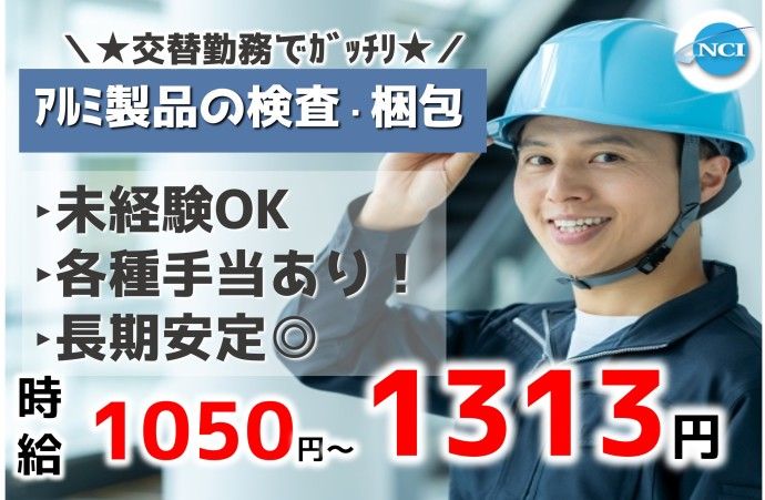【朝・夜2交替勤務でガッチリ!)各種手当も充実◎トラックや新幹線に使用するアルミ製品の検査♪