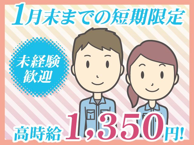 1月末までの短期限定! 高時給1,350円&日払い・週払い◎ シンプル作業だから未経験でも大丈夫♪