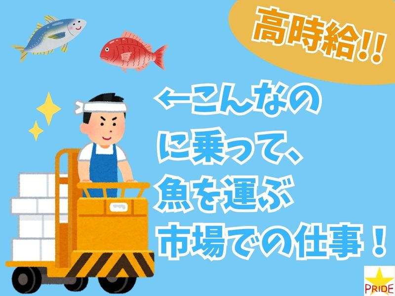 職種/仕事内容 | 仕事内容 【お仕事番号:10201】 \男性活躍中!!市場内の軽作業staff大募集/ ✅未経験から深夜時給2000円の超高時給! ✅23時スタートの夜勤&1日6.5時間だけ! ✅基本週5日固定シフトの完全週休2日制◎ ✅普通免許さえあれば月収26万超も可能♪ - <お仕事内容> ✨20代~40代の男性スタッフ活躍中!!✨ 市場内での魚の出荷作業のお仕事! 【具体的な作業は?】 ⏩魚を出荷店舗ごとに仕分ける作業。 ⏩台車を使いながら、魚を市場内の店舗に 配送する作業。 ⏩魚の活け締め作業。 <活け締め作業とは…> 魚の血抜きをして、鮮度を保たせる作業の ことを言います。 ー*ー*ー*ー*ー*ー*ー*ー*ー*ー 【POINT】 ⭐普通免許があれば経験一切不要! ⇒作業はイチから丁寧にお教えしますので、 未経験から安心して始められます◎ ⭐作業場は空調完備! ⇒夏場や冬場でも快適に作業できます♪ ⭐その他の職場設備もバッチリ◎ ⇒シャワー施設完備や制服・長靴貸与など、 働きやすい環境が整っています! - <この仕事に関するQ&A> Q.雇用形態は何ですか? A.派遣 Q.職種は何ですか? A.市場・物流・仕分け Q.仕事の特徴は? A.要普通自動車免許 23時開始の夜勤 週5日勤務 車・バイク・自転車通勤OK 空調施設・シャワー施設完備 #当社注力案件のためすぐお仕事紹介できます! |