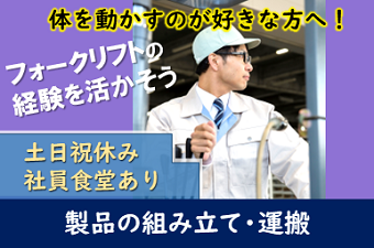 職種/仕事内容 | 仕事内容 段ボール箱組立・供給ラインへ流してフォークで運搬【フォークリフト有資格者・経験者大歓迎】≪時給1300円・土日祝休み≫ <仕事内容> プラスチック容器を作っている会社でのお仕事! ・製品を入れる箱の作成 →ラインで使う様々なサイズの箱を作って、流していただきます。 ・製品が入った箱の積み上げ(10~15キロ前後) ・フォークリフトによる倉庫への製品の運搬 →ライン作業を経た箱をフォークリフトを使って運搬していただきます。 ・その他作業 作業比率は【箱の作成5:フォーク5】 メインは肉体労働になりますので、体を動かす仕事をしたい方にオススメ★ 立ち作業になります。 運転作業です。 重量物を扱う(15㎏以上)ことがございます。 個人作業でのお仕事です。 《職場環境》 男性が多い職場です。 アピールポイント <仕事内容> プラスチック容器を作っている会社でのお仕事! ・製品を入れる箱の作成 →ラインで使う様々なサイズの箱を作って、流していただきます。 ・製品が入った箱の積み上げ(10~15キロ前後) ・フォークリフトによる倉庫への製品の運搬 →ライン作業を経た箱をフォークリフトを使って運搬していただきます。 ・その他作業 作業比率は【箱の作成5:フォーク5】 メインは肉体労働になりますので、体を動かす仕事をしたい方にオススメ★ 立ち作業になります。 運転作業です。 重量物を扱う(15㎏以上)ことがございます。 個人作業でのお仕事です。 《職場環境》 男性が多い職場です。 \充実した福利厚生/ ◎社会保険・雇用保険完備 ◎有給休暇有(6ヶ月経過後、10日付与)※規定あり ◎残業手当 ◎交通費支給(規定内) ◎確定拠出年金制度 ◎週払い制度(週3回対応) ◎お友達推薦制度あり(規定有り) ※1名につき3万円~10万円臨時給与として支給 ◎車(マイカー)・バイク通勤可(無料駐車場あり) ◎制服貸与 ◎社員食堂あり ◎食事持参可 ◎福利厚生プログラム (宿泊、グルメ、ショッピングなど大幅割引が受けられる10万アイテムのメニューがあります。) |