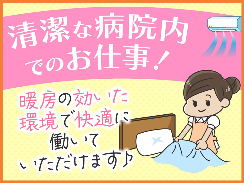 職種/仕事内容 | 仕事内容 <明理会中央総合病院での勤務> 安定した仕事量で、慣れればコツコツと取り組めます。 安定した収入と働きやすい環境が魅力です。 【ポイント】 ・時給アップ! ・家事感覚でできるシンプルな作業 ・残業なしで家庭との両立も可能 ・充実した研修制度で未経験でも安心 ・お得な医療費の減免制度(月額3万円)が利用可能 【主な業務内容】 ・各病室でのベッドメイク ・タオル、病衣などの回収や配布 ※すべての業務ができるようになった場合は 毎月手当2000円が支給されます! 作業はシンプルで、未経験者でも安心して始められます。 業務量も安定しており、長期的に無理なく働けます。 接客対応もないため、作業に集中できる環境です。 |