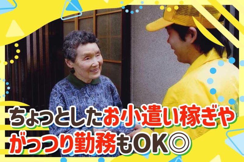 対象となる方 | 求めている人材 扶養内で働きたい方やお小遣い稼ぎ、 家計の足しに働きたい方、 ガッツリフルタイムで稼ぎたい方にも ピッタリなお仕事です◎ 【必要条件】 ・要普通自動車免許 【歓迎条件】 ・扶養内で働きたい方 ・長期的に働ける方 ・主婦(主夫)さん ・私生活と両立して働きたい方 ・配送経験がある方 未経験の方も多く活躍しており、 長期的に働きやすいお仕事です! 40代、50代、60代の方も活躍中!! いきなりがっつり勤務が難しい方や 家計の足しに少し働きたい方でも 少ない日数から開始することが可能なので 家庭との両立も可能です◎ もちろんフルタイム勤務でガッツリ 働くことも可能ですよ! |