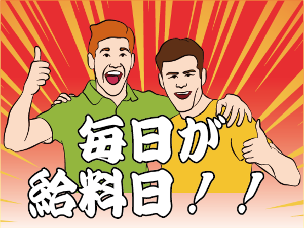 待遇・福利厚生 | 【保険制度】 雇用保険、労災保険、健康保険、厚生年金 【福利厚生】 待遇・福利厚生 ●急な出費も安心! 「全額日払い制」 →勤務後、当日に現金手渡し! ★友達と食事!デート!レジャー!など 遊び予定に合わせて働いて現金をゲットできます! ●経験や資格に応じて日給アップ! ●残業時は別途、残業手当を支給 【特別入社手当】 ・作業用品プレゼント ・寮費1ヶ月無料 ※すべて当社規定により支給。 加入保険 健康保険あり・厚生年金あり・雇用保険あり・労災保険あり |