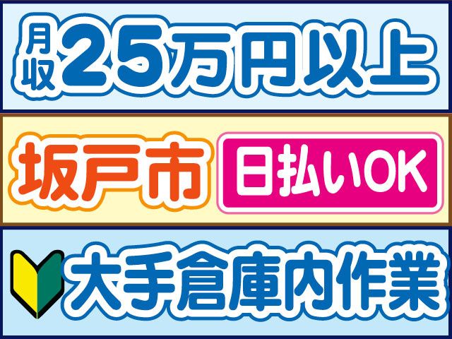職種/仕事内容 | 仕事内容 大手通販サイト倉庫内にて長期のカンタン軽作業 夜勤専属で、深夜手当もガッツリ、最大時給1600円 50代60代の中高年・シニアの方も活躍中 「ここがポイント」 〇未経験OK、ご家族・お友達と一緒もOK 〇時給1280円スタート、さらに深夜手当もあり 〇夜勤・週3日から勤務OK 〇20代30代40代50代60代の男女活躍中 〇坂戸駅より無料送迎あり 〇私服勤務、髪色・髪型自由 〇充実の職場環境 ・広くて綺麗なカフェテリアあり ・売店・休憩スペース完備 ・空調完備で一年中快適 〇日払いOK(規定内) 〇履歴書不要 〇交通費支給(規定内) 〇「マイリク定着支援」導入企業 インターネット通販大手の 大型物流センターでのお仕事詳細 ・商品の棚入れや梱包 ・商品のピッキング ・商品の仕分けなど 入出荷に関連した各種作業をお願いします モニターやハンディターミナルを使って 業務を行うので、確認はカンタン、ラクラク シンプルな軽作業なので初心者さんもすぐに慣れます 入社日に配属が決まり、トレーナーさんが 一から丁寧に指導してくれますので、 未経験の方でも安心してスタートできます。 (事前に30分~1時間の職場見学もOK) 扱う商品は日用品、雑貨、食品、家電、玩具など身近なものばかり。 重量物は少なく、初めての方から中高年の方まで無理なく始められます。 「勤務について」 ・夜勤のみ(勤務時間選べます) ・出勤日は週3日から5日 シフト制(週休2日~4日) 急な発熱・体調不良・冠婚葬祭など、 突発的なお休みに柔軟に対応しております。 【こんな経験活かせます!】 ・物流業界経験、倉庫内作業経験 ・梱包、箱詰め、包装パート・アルバイト ・軽作業パート・アルバイト ・仕分け、選別パート・アルバイト ・ピッキング、運搬パート・アルバイト ・倉庫内派遣 ・主婦(夫)パート(職種不問) ・中高年アルバイト・フリーター 前職不問で採用しております。 ブランクのある方もOK(経験の浅い方もOK) ご不明な点はお気軽にお問い合わせください。 お電話でのご応募、ご質問も受付中! 株式会社ロフティー 熊谷支店 担当営業、または採用担当まで TEL0800-222-6888(フリーダイヤル) お仕事情報などはこちら https://entori.jp/lofty-saitama コーディネーター・定着支援のWサポート体制導入 「マイリク定着支援」導入企業! アンケートで職場の様子を確認し、 コーディネーター・定着支援担当が連携してサポート。 はじめての派遣でも安心して働けるよう迅速かつ 丁寧にサポート対応いたします |