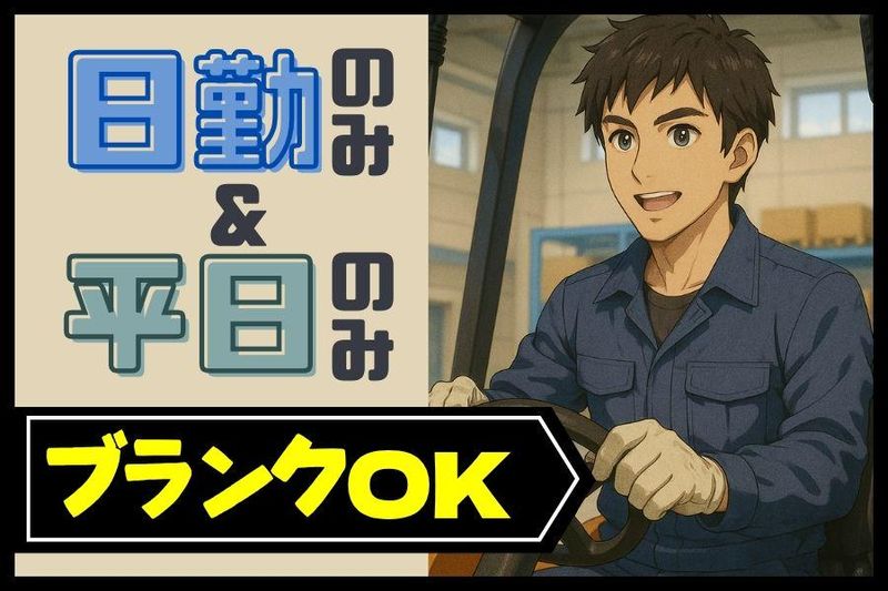 職種/仕事内容 | 仕事内容 \大手メーカー部品を扱う安定倉庫で、経験を活かせる仕事です/ 大手自動車メーカーの部品を取り扱う倉庫で、フォークリフトを使用した入出庫作業や出荷準備、簡単なPC入力業務をお任せします。 パソコン操作は製品数の入力や簡単なコメント入力程度なので、スキルに不安がある方でも問題ありません。 【具体的な業務内容】 ◆ フォークリフトによる運搬 → 入荷製品を在庫スペースに運搬、出荷準備済み製品を積み込みエリアへ移動など ◆ 入出庫処理 → 荷物の数量を確認し、専用システムにデータを入力。テンキー入力ができればOK ◆ 出荷準備 → 運搬した製品の検品や配置確認など ◆ 荷下ろし作業(月2~3回) → トラックからの荷下ろし(1日3時間程度) 【よくあるご質問(Q&A)】 ~経験を活かしながら、安定して働ける環境です~ Q. パソコンが得意ではないのですが大丈夫ですか? A. 数字や簡単な文字の入力ができれば問題ありません。難しい操作や書類作成はありません。 Q. フォークリフトの操作はどんな感じですか? A. 製品ごとに決められた運搬ルートがあり、作業はルールに沿って行います。安全を最優先に、丁寧な操作ができれば大丈夫です。 Q. 力仕事は多いですか? A. フォークリフトでの運搬が中心で、手作業による重い荷物の持ち運びはほとんどありません。 Q. 年齢層はどのくらいですか? A. 20代・30代・40代・50代の男性が中心に活躍しており、落ち着いた雰囲気の中で作業しています。 Q. 一人作業が多いですか? A. 各作業には担当がありますが、全体の流れはチームで動いているので、必要な時はすぐに連携・相談ができます。 |