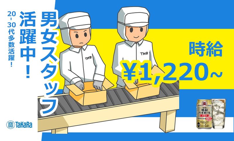 【宝酒造工場での軽作業スタッフ】時給1,220円~!食品工場でのお仕事が始めての方も大歓迎!【交通費支給あり⭐️社会保険完備】