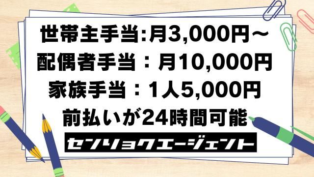 待遇・福利厚生 | 【保険制度】 雇用保険、労災保険、健康保険、厚生年金 【福利厚生】 待遇 社会保険加入・労災関係・有給休暇制度 ※世帯主手当有(当社規定) ※配偶者手当有(当社規定) ※子供手当有(当社規定) ※勤務場所の喫煙環境:屋内全面禁煙(屋外喫煙可) |