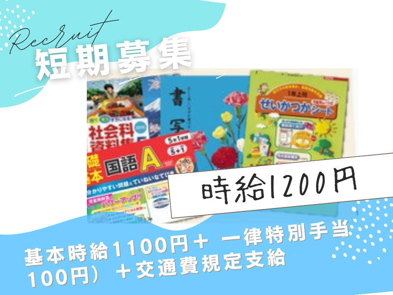 職種/仕事内容 | 仕事内容 ================ 短期スタッフ60名募集!! 笑顔あふれる職場で、みんなと 楽しく仕事に取り組んでいます! カンタン作業!未経験OK! 若手からシニアまで大歓迎! ================ 時給1200円(基本時給1100円+ 一律特別手当100円)+交通費規定支給 ■■■■■ 合同説明会開催 ■■■■■ 日程:1月8日(木)、1月15日(木)、 1月22日(木) 時間:10:00スタート 会場:文溪堂(駐車場あり) ※羽島市江吉良町江中7-1 本館1階 説明会の日時は、応募後に説明会予約の 専用フォームをお送りしますので、 説明会の予約をお願い致します。 「話を聞いてみたい」という方も お気軽にご参加ください。 ■■■■■■■■■■■■■■■■■■■ ※こちらのURLからも 説明会の予約ができます。 https://x.gd/7XUuo 【仕事内容】 主に小学校で使用する教材を 全国にお届けする仕事です。 【具体的には】 見本セット作業(束ね) ★2/2~2/27(60名) 先生に送るサンプル品をまとめる作業。 チームで役割分担して、必要な教材を集め、 まとめていく作業です。 ◎求人のポイント- #未経験OK、力仕事ほとんどなし。 マニュアル通りで安心♪ #室内作業中心&チーム作業で安心安全 #学生・フリーター・主婦・ シニアまで幅広く活躍中 #土日祝休みでプライベートも充実 #車通勤OK(岐阜羽島駅から車で3分) - 短期間で 「旅行のため」 「引っ越し費用に」 「趣味のため」の お小遣い稼ぎができますよ! |
