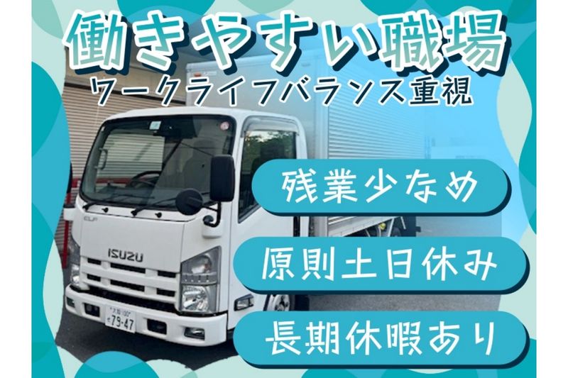 アピールポイント: 【ドライバー経験がなくてもOK】 普通自動車の運転に慣れている方なら トラックドライバー未経験でもOK! 資格取得支援制度があるので 中型免許をお持ちでない方は 入社後に取得することも可能です! ※要相談 3t以上のトラックの運転経験がある方や 物流倉庫での勤務経験がある方は 優遇いたします。 お気軽にご相談ください! 【プライベートも充実】 原則土日休み&残業少なめの環境! 仕事とプライベートに メリハリをつけられるので 働きやすさはバツグン。 長期休暇も取得できます! ワークライフバランスを 見直したいと考えている方や プライベートの時間を大切にしたい方は ぜひご応募ください!