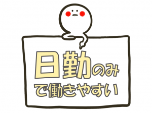 勤務時間 | 固定時間制 勤務時間 7:50~16:10 ・休憩60分 ・実働7時間20分 |